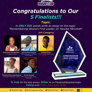 Voting has commenced in the Joy Learning Essay Club essay Finalist.